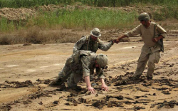 quagmire - A soft boggy area of land that gives way underfoot