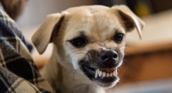 snarl - (of an animal such as a dog) make an aggressive growl with bared teeth