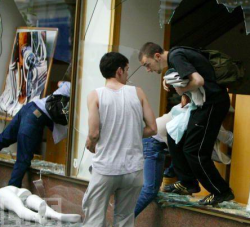 loot - To steal goods from (a place), typically during a war or riot