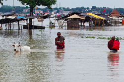 wade - To walk through water or another liquid or soft substance