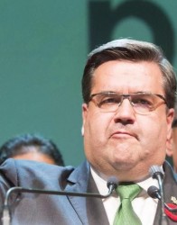 pout - To push one's lips or one's bottom lip forward as an expression of displeasure or annoyance.