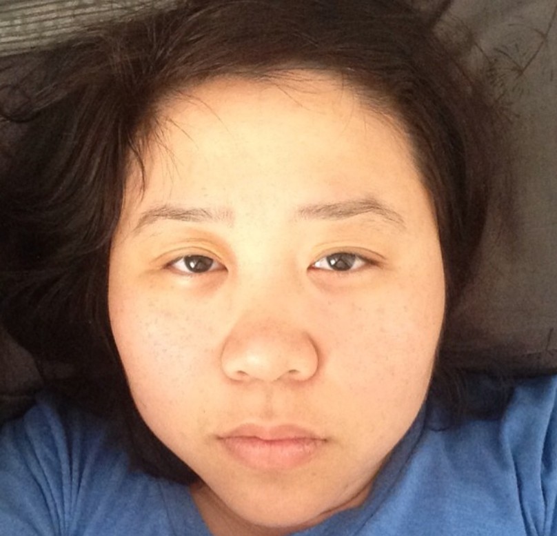 bleary - When eyes are unfocused or filmy from tiredness and lack of sleep.