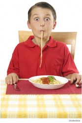 slurp - To eat or drink something with a loud sloppy sucking noise.